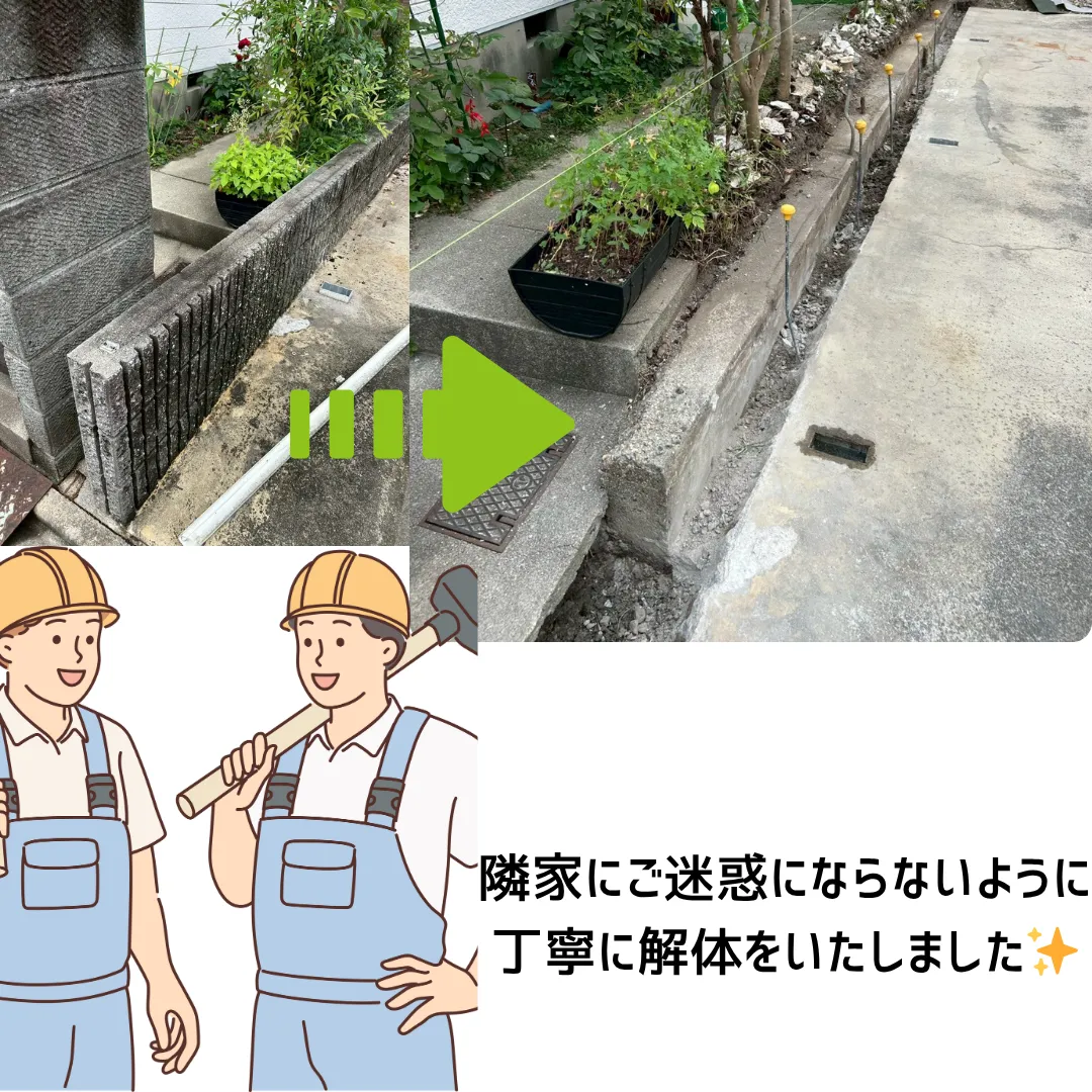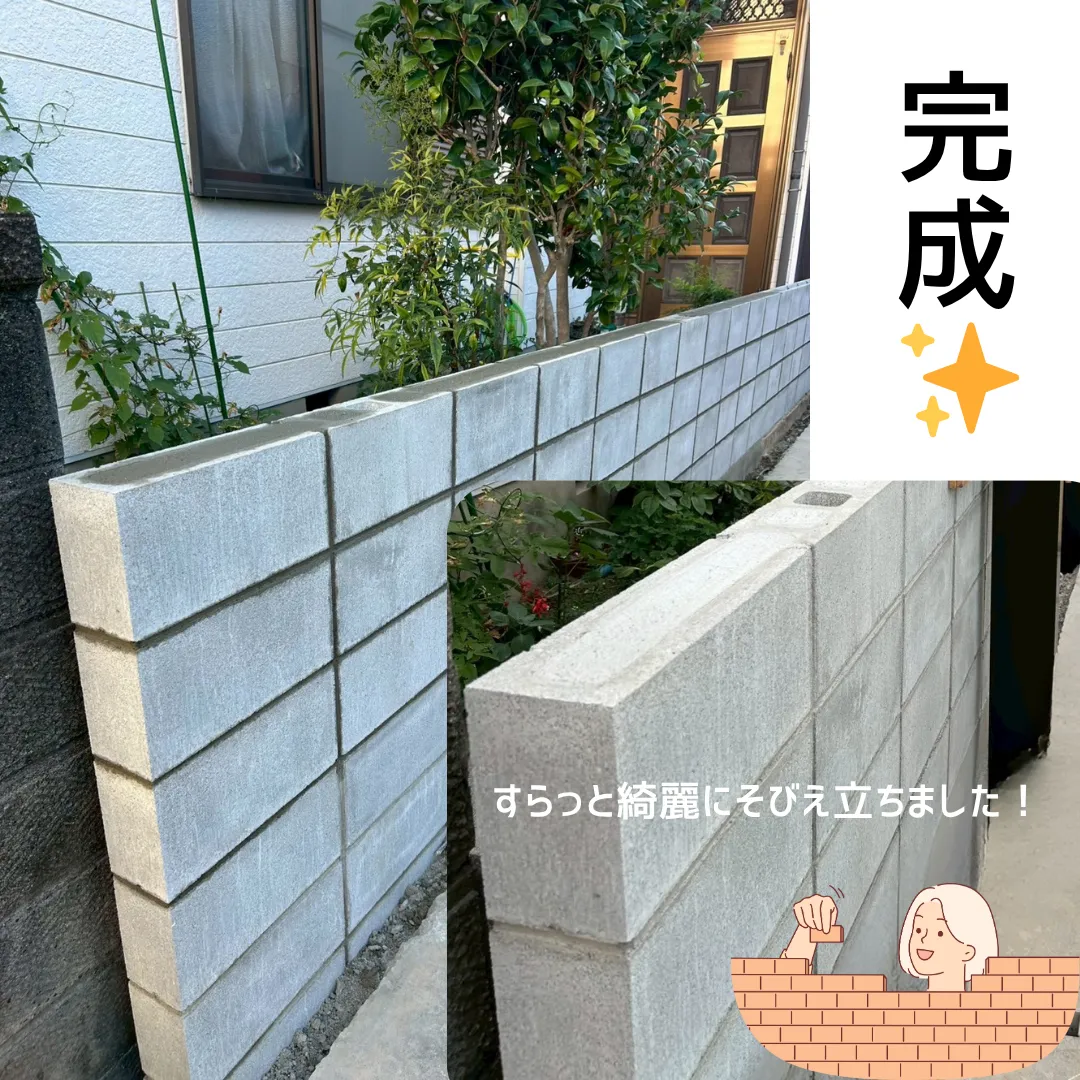 【愛知県名古屋市の外構】境界ブロック:化粧ブロック解体+CBブロック積み新設施工❀