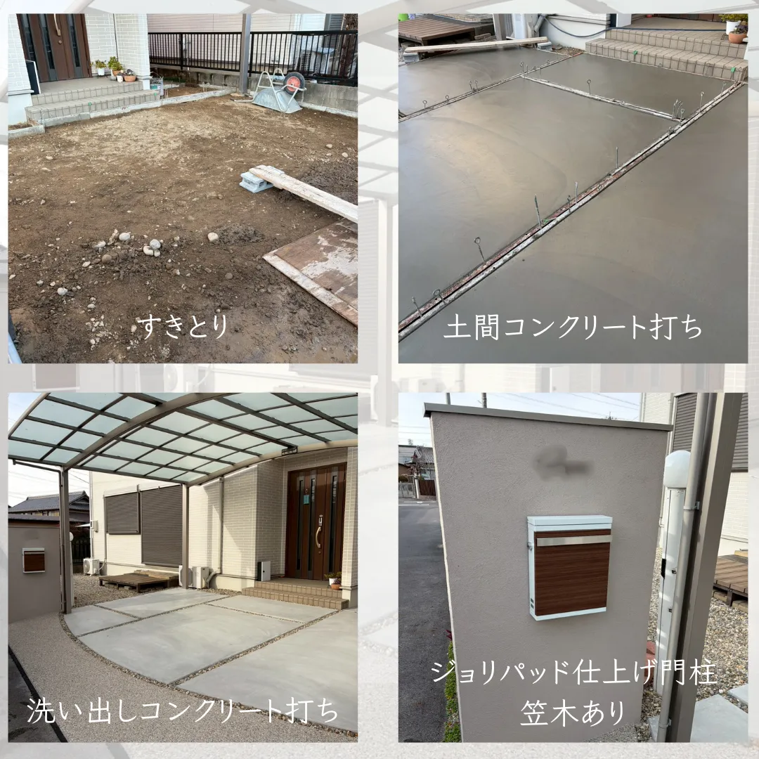 【愛知県江南市の外構】🏡リフォーム一式:洗い出し+土間コンクリート打ち+門柱施工🏡