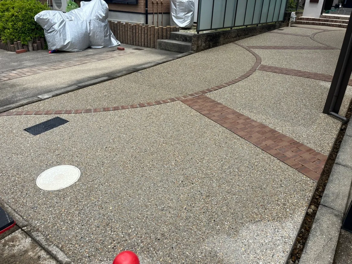 小牧市の洗い出しコンクリートです。普通のコンクリートに比べて、タイヤ痕も付かないですし、水垢も目立ちにくいです。洋風、和風問わず合うので、土間コンクリートをお考えの方は、参考にしてみてくだ…